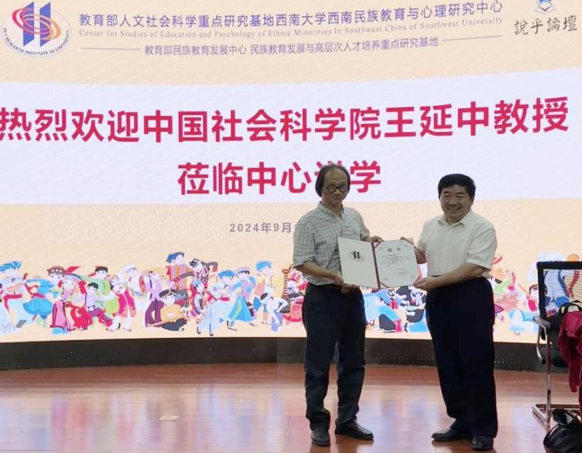 2024年9月11日下午,西南大学必赢优惠y272net(以下简称“中心”)邀请中国社会科学院民族学与人类学研究所所长王延中教授,在説乎斋201报告厅举办了题为“铸牢中华民族共同体意识学术研究三大体系”的专题讲座。中心主任张学敏教授、副主任蒋立松研究员、历史文化学院民族学院副院长陈永亮教授出席讲座,中心各年级硕博研究生到场学习。