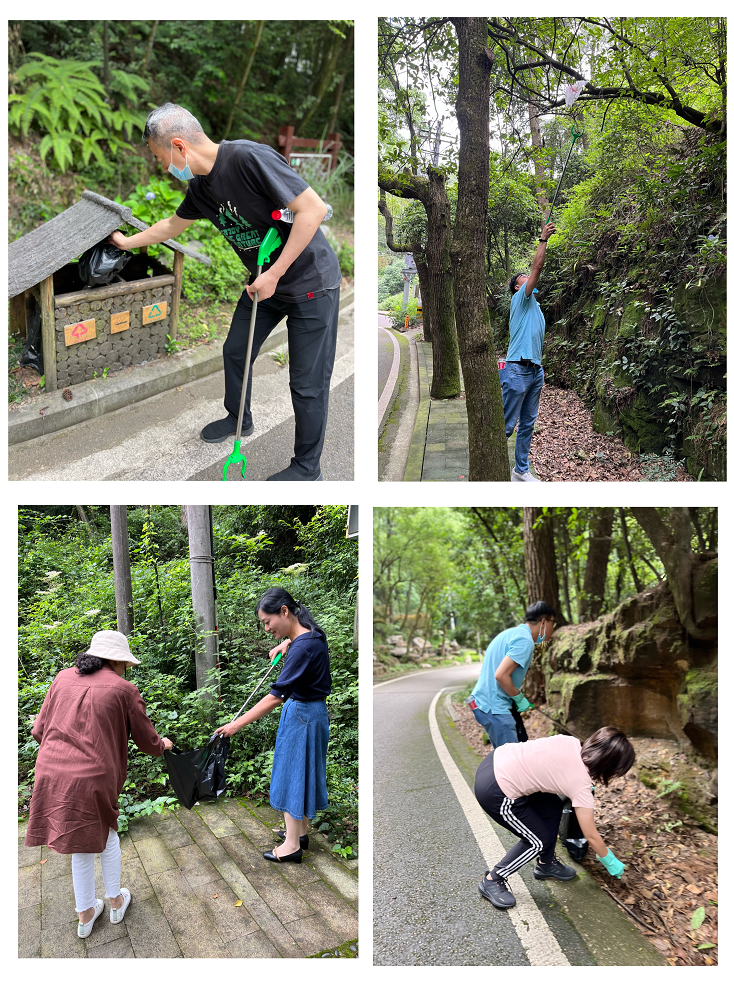 在中共中央西南局办公地旧址门前,全体教师携带着各种清洁工具在以旧址为中心的周边区域开展了垃圾清理工作,各尽所能,还一方青山绿水,为红色基地的生态保护尽一份微薄的力量。