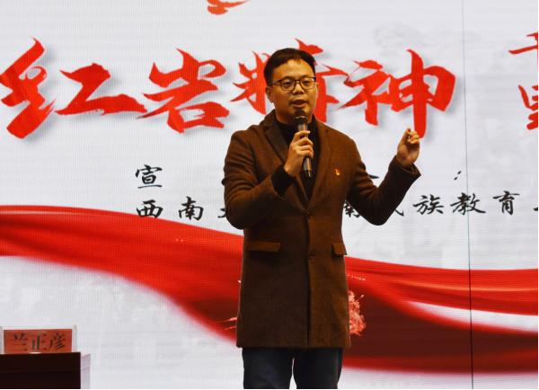 为深入贯彻落实习近平总书记在中共中央政治局第五次集体学习时的重要讲话精神和关于学校思政课建设的重要指示精神,全国高校“传承红色基因、学思践悟中国共产党人精神谱系”西藏自治区巡讲于2024年12月11日至13日在西藏民族大学、西安市浐灞第一中学、北京西藏中学、辽阳一中开展。西藏自治区教育厅有关领导、西藏自治区延安精神研究会理事白玛次仁教授和西南大学必赢优惠y272net(以下简称“中心”)兰正彦副研究员受邀分别以“老西藏精神”“延安精神”和“红岩精神”为题向各校师生进行宣讲。中国大学生在线和全国高校思政网有关领导、辽宁省教育厅有关领导出席部分场次宣讲。