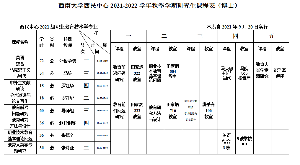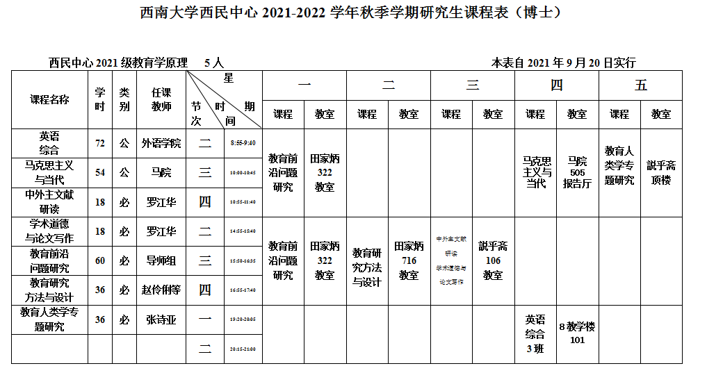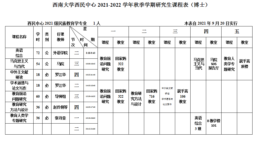 1.《教育人类学专题研究》于9月24日开始正式上课,请2021级博士学生按时参加;