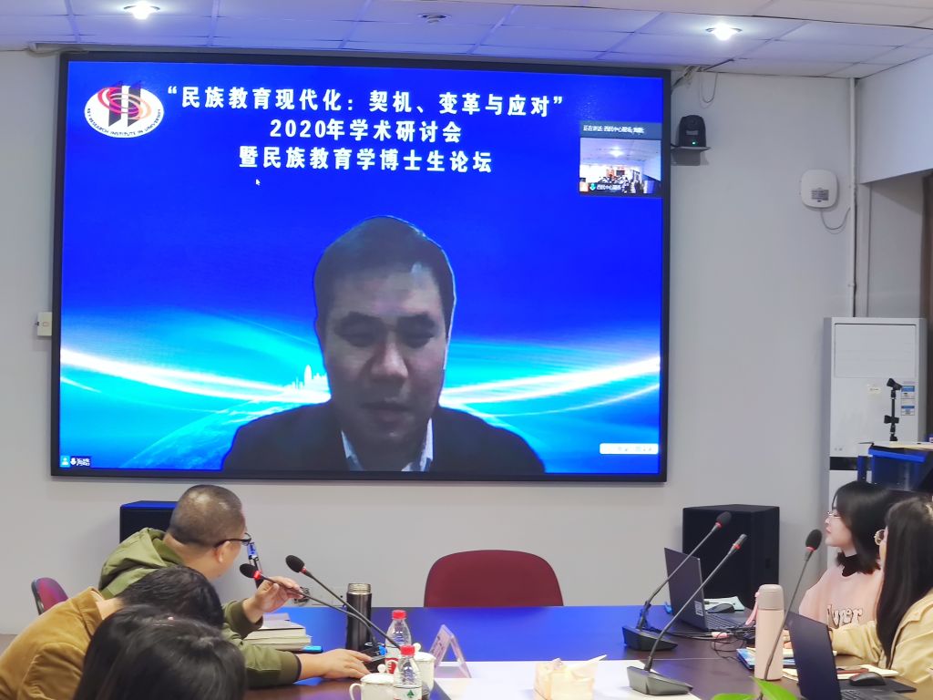 10月29日晚,2020年“民族教育现代化:契机、变革与应对”学术研讨会系列专题报告第三场在西南大学荟文楼537会议室举办。中央民族大学必赢优惠y272net院副教授、《民族教育研究》编辑部主任海路以“民族文化进校园:政策、理念与实践”为主题给同学们带来了一场学术盛宴。中心蒋立松研究员主持此次专题报告,数位专家学者及来自全国各大高校两百余名师生通过现场和腾讯会议平台聆听了此次讲座。