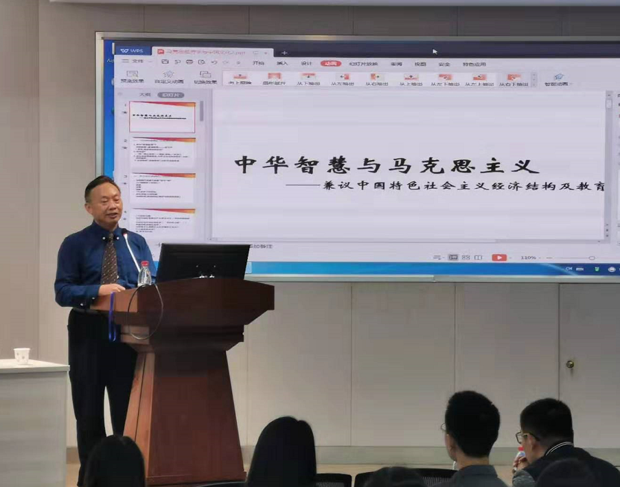 杨继国教授认为,马克思主义与中国优秀传统文化有一致性,与中国特色社会主义也有共性。中国特色社会主义是可以和马克思主义结合起来的,也必须与马克思主义结合起来。杨教授运用经济学的研究方法,主要从“中华思维模式与智慧教育”、“东方文化的西化与思维模式的西化”、“文化模式的一分为二:东方文化与西方文化”、“中华思维模式和逻辑方法的来源”四个方面展开论述。结合大量生动的案例,杨教授深刻剖析了中西思维模式的差异,围绕思维模式的趋同与分化、人工智能与教育面临的挑战与机遇等话题,同师生进行了热烈的互动交流。