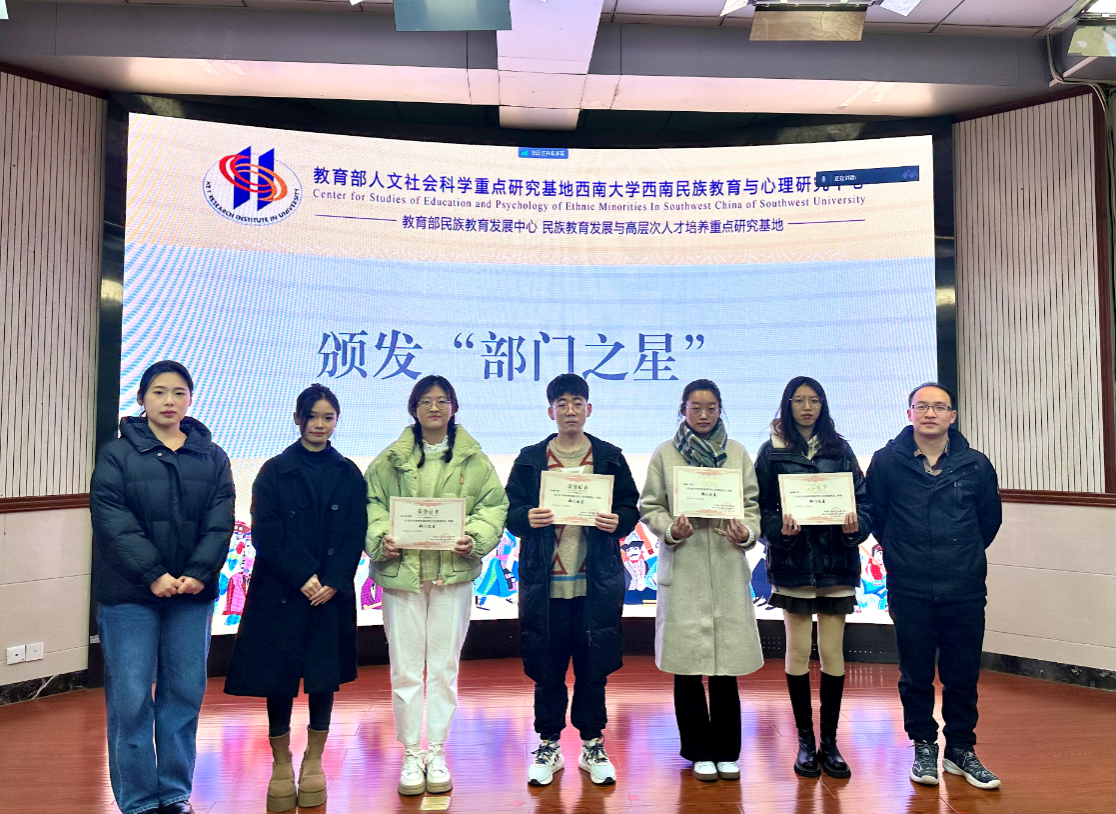 会上,中心研究生会主席团成员谭颖对本学期研究生会所做的工作进行了回顾与总结,主要围绕学术活动组织与策划等方面肯定了研究生会成员的工作成绩。随后,研究生会秘书纪检处、文体活动部、外联宣传部、学术田野部、信息技术部的负责人依次对本学期各部门的工作情况进行述职汇报,并根据各部门成员本学期的工作情况推选出五名“部门之星”。陈伦超老师为“部门之星”颁奖。