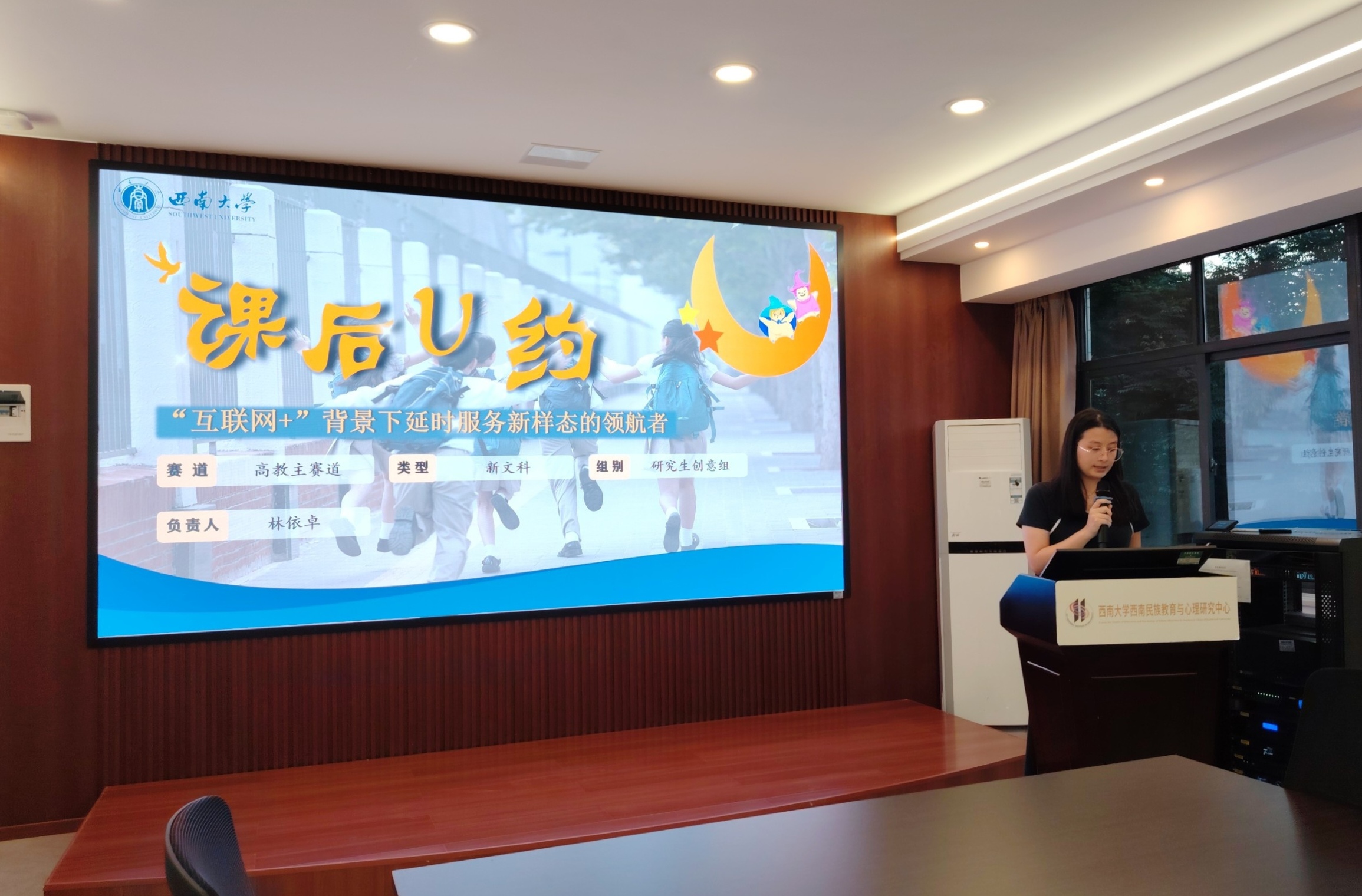 本次选拔赛共有5个参赛团队,各团队主讲人依次就项目背景、模式、理念、特点及发展前景进行项目展示,随后评委针对各项目进行专业点评并提出改进建议。经评审,“彩‘绘’童年——中国汉藏语系儿童识字绘本研发”和“凯梦升学少数民族学子生涯规划智能服务平台”等两个项目获得一等奖;“课后U约——‘互联网+’背景下延时服务新样态的领航者”等三个项目获得二等奖。