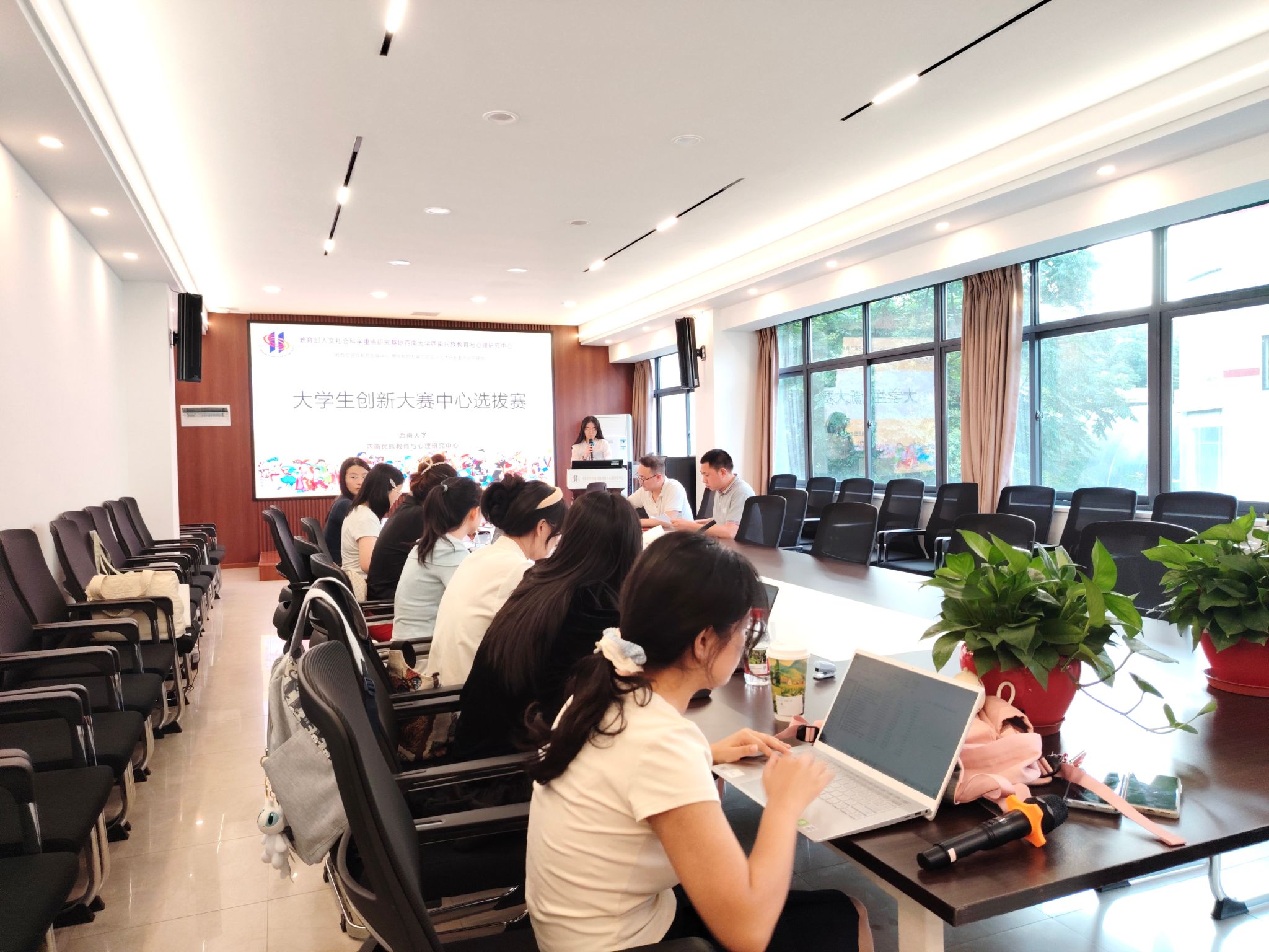 为进一步激发青年学子的创新活力,培养研究生创新思维,5月19日下午,西南大学必赢优惠y272net(以下简称“中心”),在荟文楼537室举办了中国国际大学生创新大赛(2025)西民中心选拔赛(以下简称“创新大赛”)。西南大学大学生创新创业指导中心李腊主任莅临指导。
