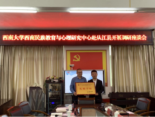 座谈会上,从江县江贤菊督学还就从江县的教育、经济、旅游等问题向调研小组做了简要汇报,并真诚希望中心或外界可以为从江县提供相应帮助。蒋立松研究员就以上问题与从江县有关负责同志交流了意见建议。随后举行“扎根学校”授牌仪式。