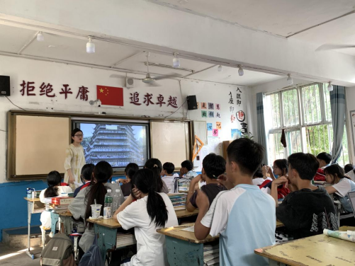 5月24日下午,以中心硕士研究生杨舒晗为小组长的研究生团队前往从江二中,利用截取的侗族“鼓楼”上不同部分的绘画图片和E-prime程序,进行“混搭型视觉符号增进学生中华民族共同体意识”研究。团队在县二中侗族学生中随机选取各年级30人、共90人为调查对象。基于测试结果,为该校完善课程体系建设和铸牢中华民族共同体意识教育实践提供参考。在开展实验的同时,杨舒晗同学以中华优秀传统文化为核心,在从江二中808班级开展现场授课,并通过授课,进一步了解学生有关的学习情况。