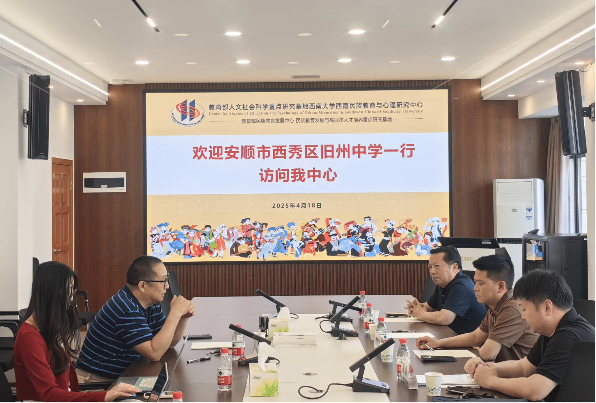 会上,蒋立松教授向旧州中学校领导一行简要介绍了中心的发展历程;详细说明了中心坚持以“铸牢中华民族共同体意识”为工作主线,聚焦民族教育改革发展中的重大理论和实践问题开展科研与咨政服务的基本情况;系统展示了中心在相关领域取得的重要成果;受中心委托向旧州中学校领导介绍了“扎根学校”的有关情况。刘昌富副书记对中心表示感谢,并代表旧州中学对共建“扎根学校”表示支持。