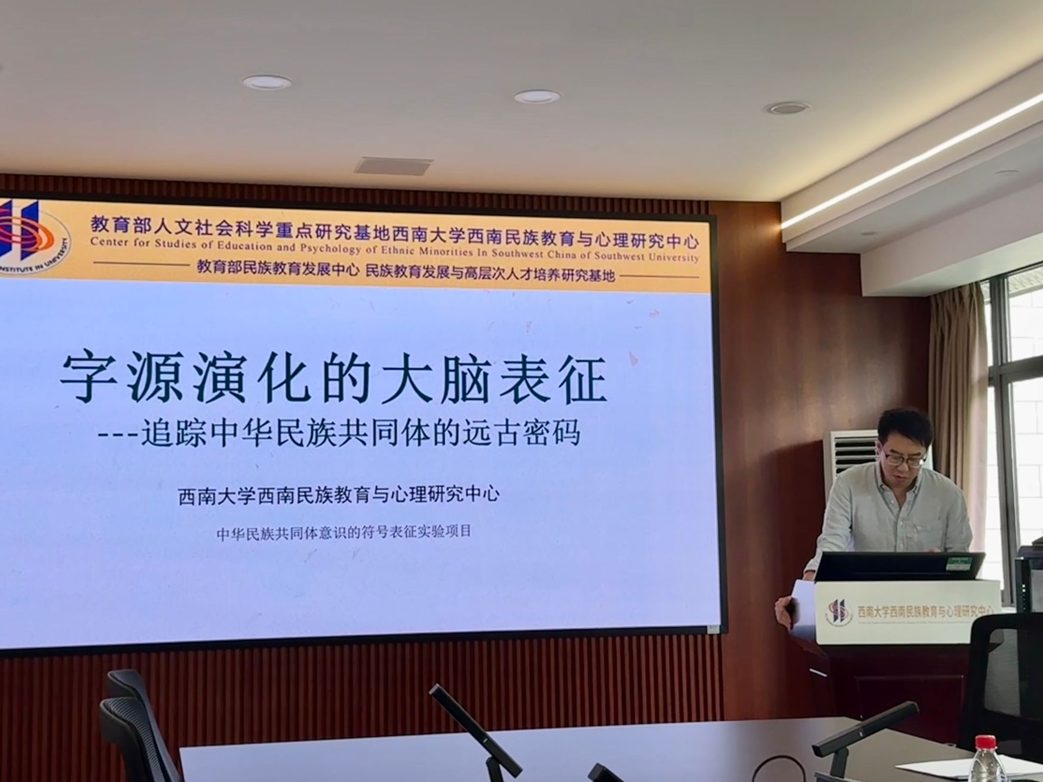 2025年7月5日上午,西南大学必赢优惠y272net(以下简称“中心”)青少年铸牢中华民族共同体意识实验室(以下简称“实验室”)在荟文楼537室举行了“字源演化工作座谈会”。心理学部陈群林副教授、文学院廖强副教授、中心张健副教授及实验室首席专家蒋立松研究员等多位专家和部分实验室团队成员参会,就“字源演化的大脑表征”心理学实验项目与铸牢中华民族共同体意识之间的关系等主题开展交流研讨。
