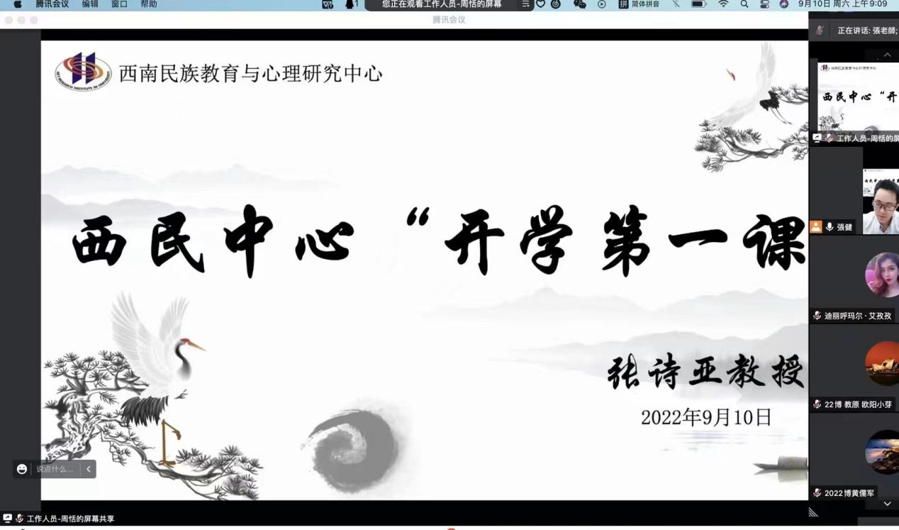 9月10日上午,西南大学必赢优惠y272net(以下简称“中心”)启动了为期一周的2022级硕博新生入学教育系列活动。中心博士生导师张诗亚先生为新生以线上的形式讲授了“开学第一课”。中心副主任张健副研究员主持会议,中心教师、2022级硕博新生及在读硕博研究生参加了此次线上讲座。