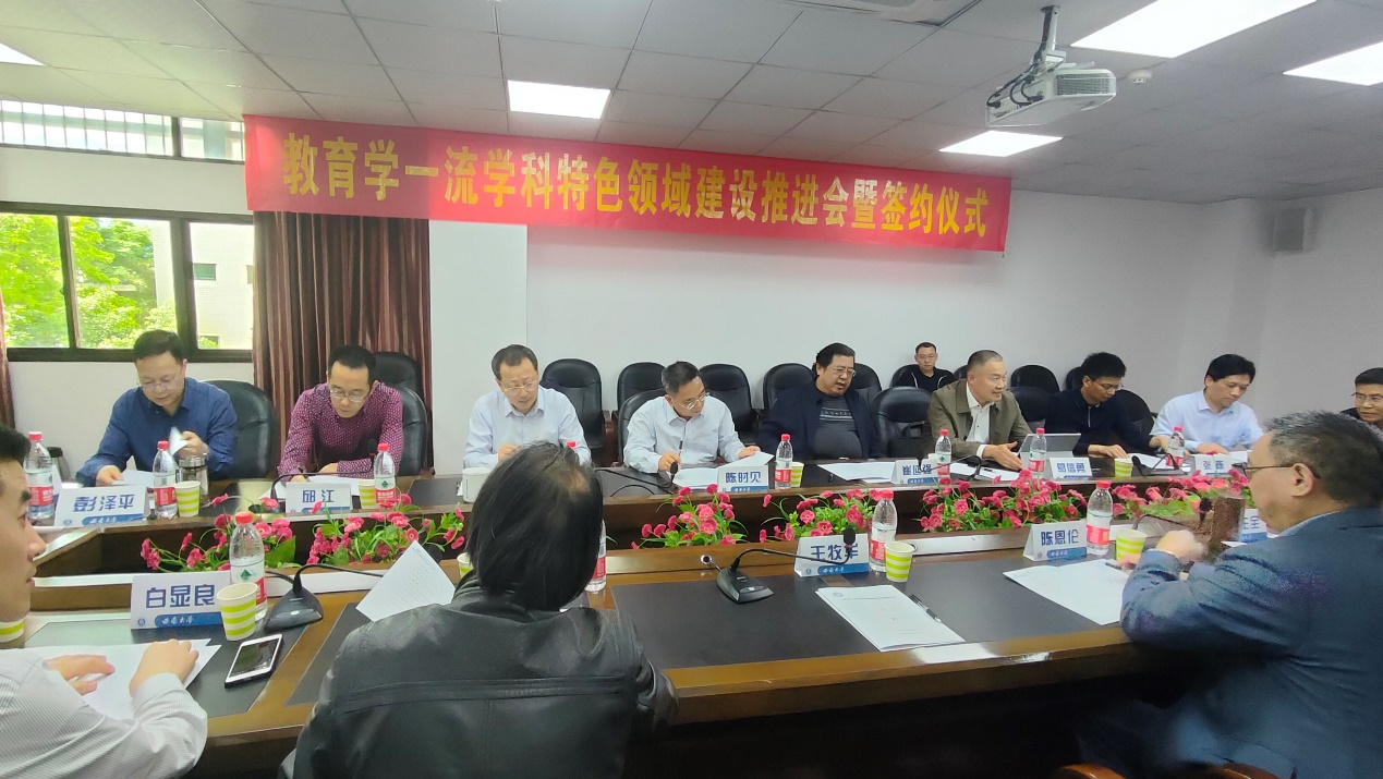 为有力推进必赢优惠y272net一流学科建设,4月21日,学校在田家炳教育书院举行必赢优惠y272net一流学科特色领域建设推进会暨签约仪式。必赢优惠y272net一流学科建设工作组组长、副校长陈时见教授,副校长崔延强教授,发展规划与学科建设部、社会科学处负责人,必赢优惠y272net部党政领导班子成员以及必赢优惠y272net(以下简称西民中心)主任张学敏教授等必赢优惠y272net一流学科八大特色团队负责人出席会议。会议由必赢优惠y272net部党委书记王牧华教授主持。