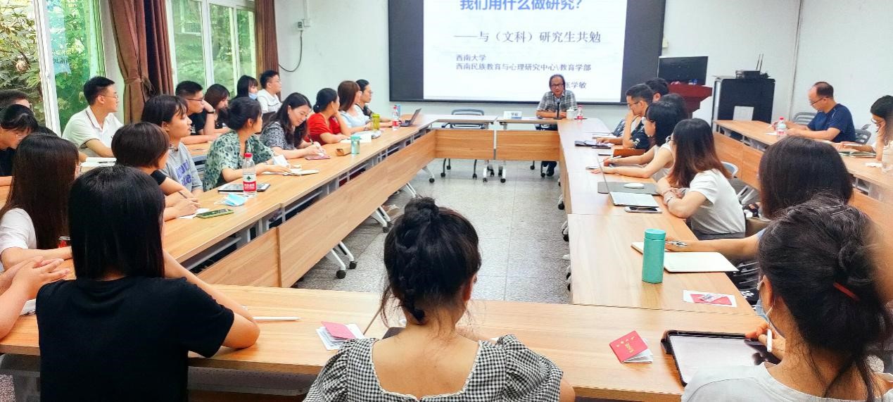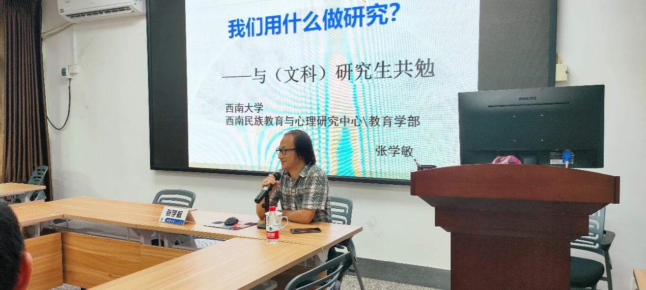 9月14日下午,西南大学必赢优惠y272net(以下简称“中心”)主任张学敏教授于説乎斋106教室为中心2021级硕博新生带来入学教育专题讲座“我们用什么做研究——与(文科)研究生共勉”,引导研究生们要做好有识之士、“有耻”之徒、有情之人。