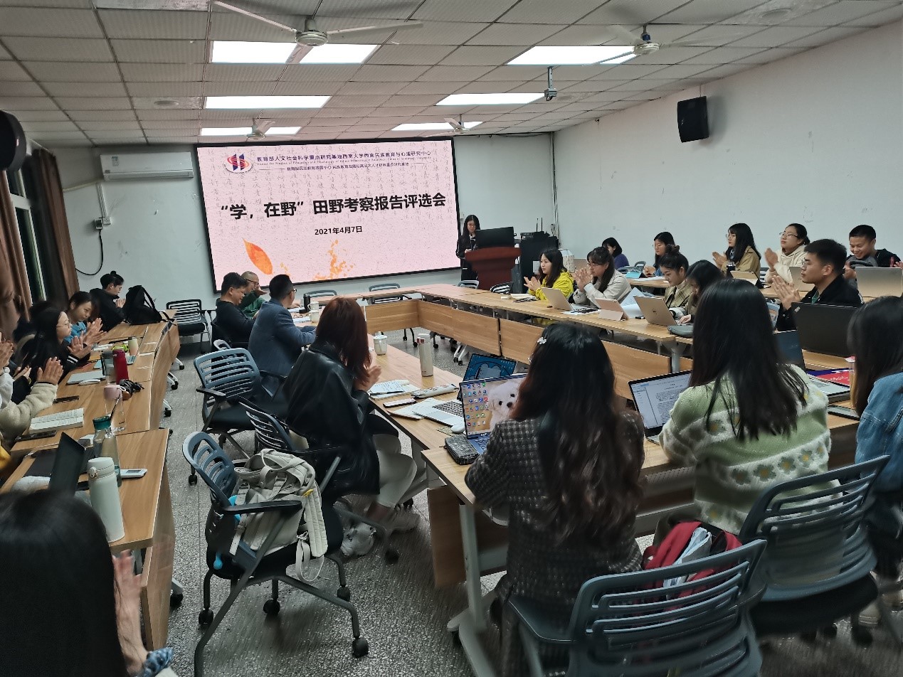 2021年4月7日,西南大学必赢优惠y272net(以下简称“中心”)在説乎斋105教室举行“学,在野”田野考察报告评选会。出席评选会的有中心副主任罗江华教授、副主任蒋立松研究员、张健副研究员和培养办主任陈伦超老师,评选会由唐琪晴主持,中心2019级和2020级全体硕士研究生和部分博士研究生到会学习交流。