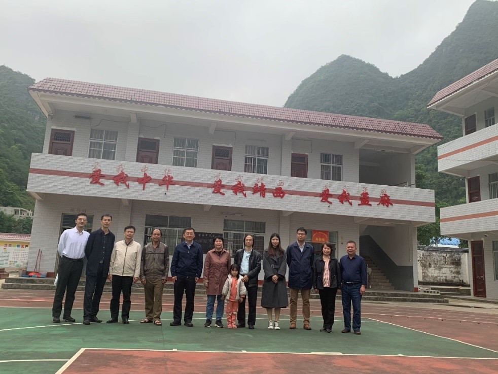 图1调研组与靖西市吞盘乡孟麻小学校长、教师合影
