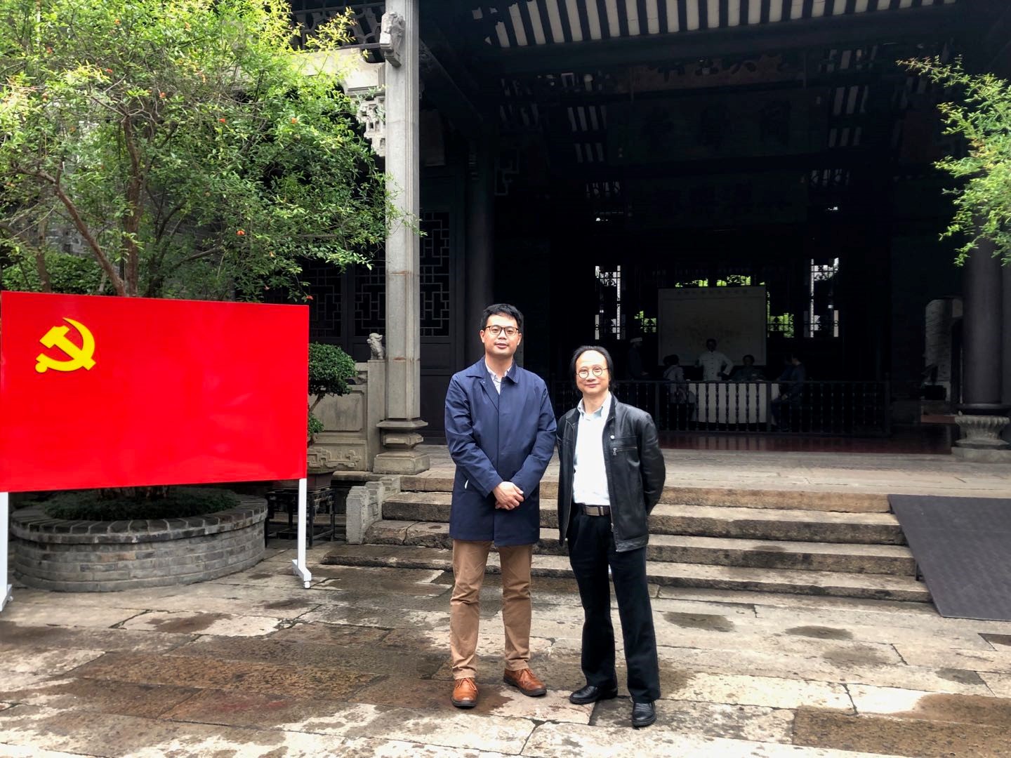 图4张学敏教授和兰正彦老师瞻仰中国工农红军第七军旧址“粤东会馆”