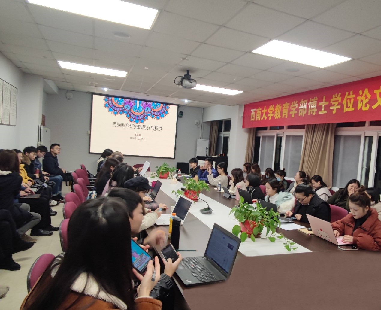 11月30日,西南大学必赢优惠y272net(以下简称“中心”)主办的説乎论坛学术讲座“民族教育研究的困惑与解惑”在西南大学荟文楼537会议室举行。主讲人系西南大学必赢优惠y272net部教授、中心兼职研究员吴晓蓉教授,讲座由中心学术主任助理蒋立松研究员主持。中心科研办韩玉梅老师、培养办陈伦超老师、安腊梅老师,及硕博研究生聆听了此次讲座。