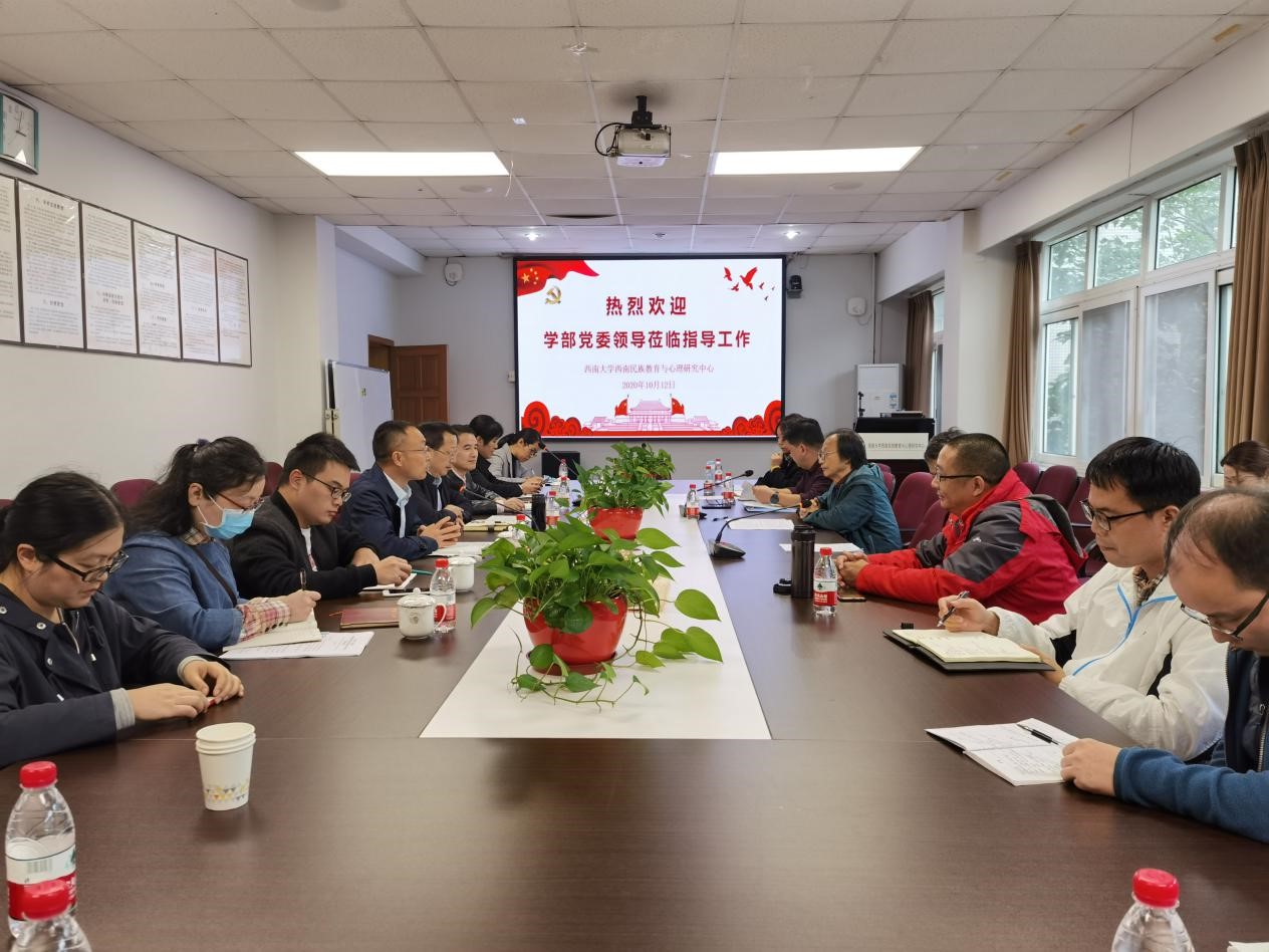10月12日下午,必赢优惠y272net部党委书记王牧华教授、部长朱德全教授、副书记(纪委书记)卓玉兵带领学部办公室主任胡琴老师、组织员李佳老师等莅临必赢优惠y272net(以下简称“中心”)537会议室进行调研。中心及中国乡村建设学院(下称“乡建院”)全体老师参加会议,会议由卓书记主持。