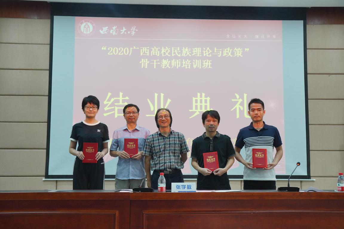 8月23-27日,2020年广西高校民族理论与政策骨干教师培训工作在教育部人文社科重点研究基地西南大学必赢优惠y272net(以下简称“中心”)举行。该培训工作由广西壮族自治区教育厅主办,广西民族大学、西南大学共同承办。8月24日上午,培训班在西南大学培训与继续必赢优惠y272net院干训楼B08教室举行隆重的开班典礼,经过四天干货满满的学习和丰富生动的实地观摩活动,学员们收获颇丰,于8月27日下午举行了结业典礼,培训圆满落幕。