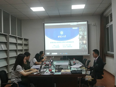 答辩会严格遵循西南大学研究生毕业论文答辩程序。在答辩会正式开始之前,答辩主席就答辩相关事宜召开答辩筹备会。答辩会开始后,各位硕士研究生在规定时间内对自己论文的研究背景、论文框架、研究方法、研究结论等进行阐述。论文阐述结束后,各位专家就该论文的优点和不足做出评价,并进行提问。各位参加答辩的同学认真听取专家的建议和问题,并就各位专家提出的问题,结合自己的研究进行回答。所有硕士研究生答辩结束后,答辩委员会召开内部会议,合并答辩结果,进行优秀论文评选。复会后,答辩主席代表答辩委员会宣布答辩结果,要求同学们根据专家给出的修改意见继续修改完善论文。在此,中心向参加本次答辩会议的专家表示衷心的感谢。