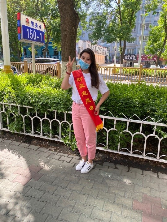 在防控疫情期间,中心2019级硕士研究生迪丽呼玛尔·艾孜孜,一位维吾尔族姑娘,自觉加入所在社区居委会——新疆伊犁河街道方圆丽景小区居委会,同社区其他工作人员、志愿者,以及全国所有投身于这场疫情阻击战的各族人民,一起为赢得这场战争做出自己的努力。迪丽呼玛尔提到:“我妈妈作为一名医生在抗‘疫’一线与新冠病毒奋力搏斗,而我作为一名研究生,更作为一名入党积极分子,在完成学习任务的前提下,应该主动积极地参加自己力所能及的疫情防控工作。”
