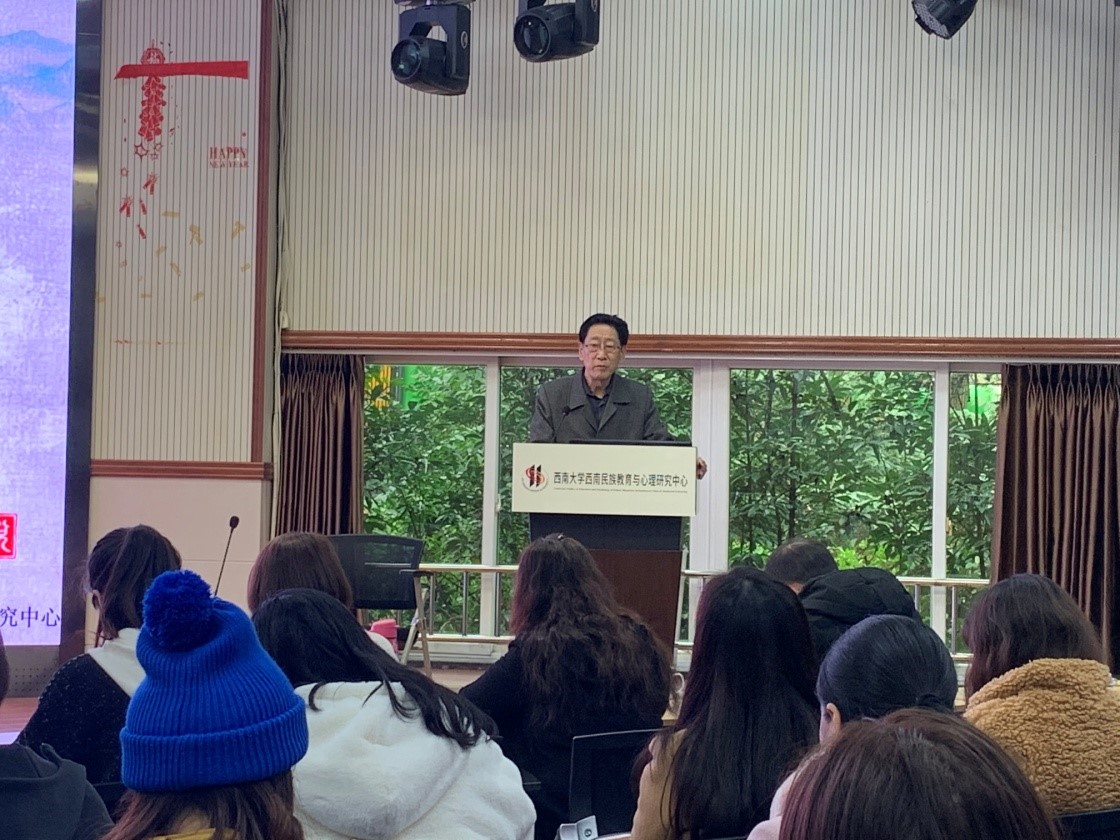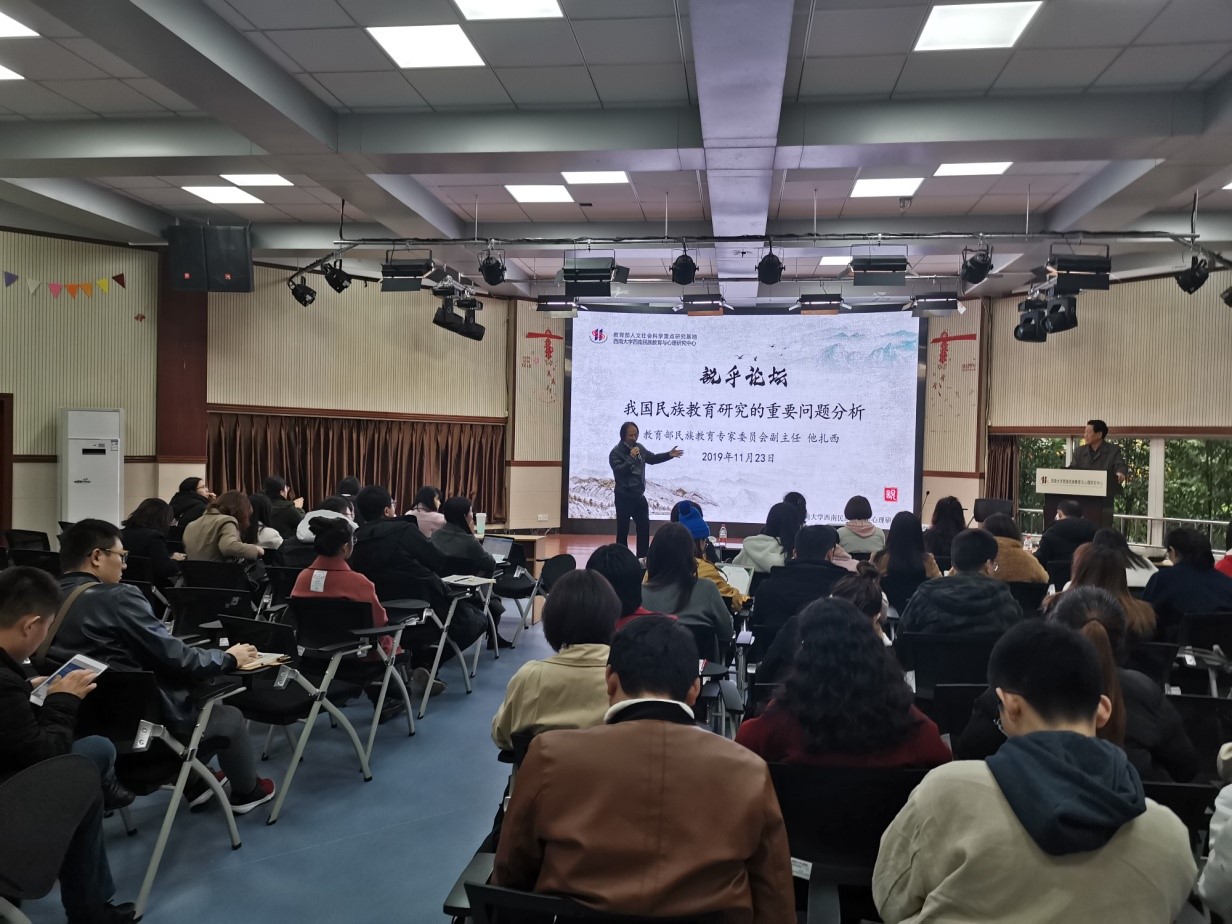 11月23日,西南民族教育与心理发展中心(以下简称“中心”)特邀教育部民族教育专家委员会副主任他扎西作客説乎斋,作“我国民族教育研究的重要问题分析”主题讲座。会议由中心主任张学敏教授主持,中心副主任么加利教授及部分教师和全体硕博研究生聆听了此次报告。