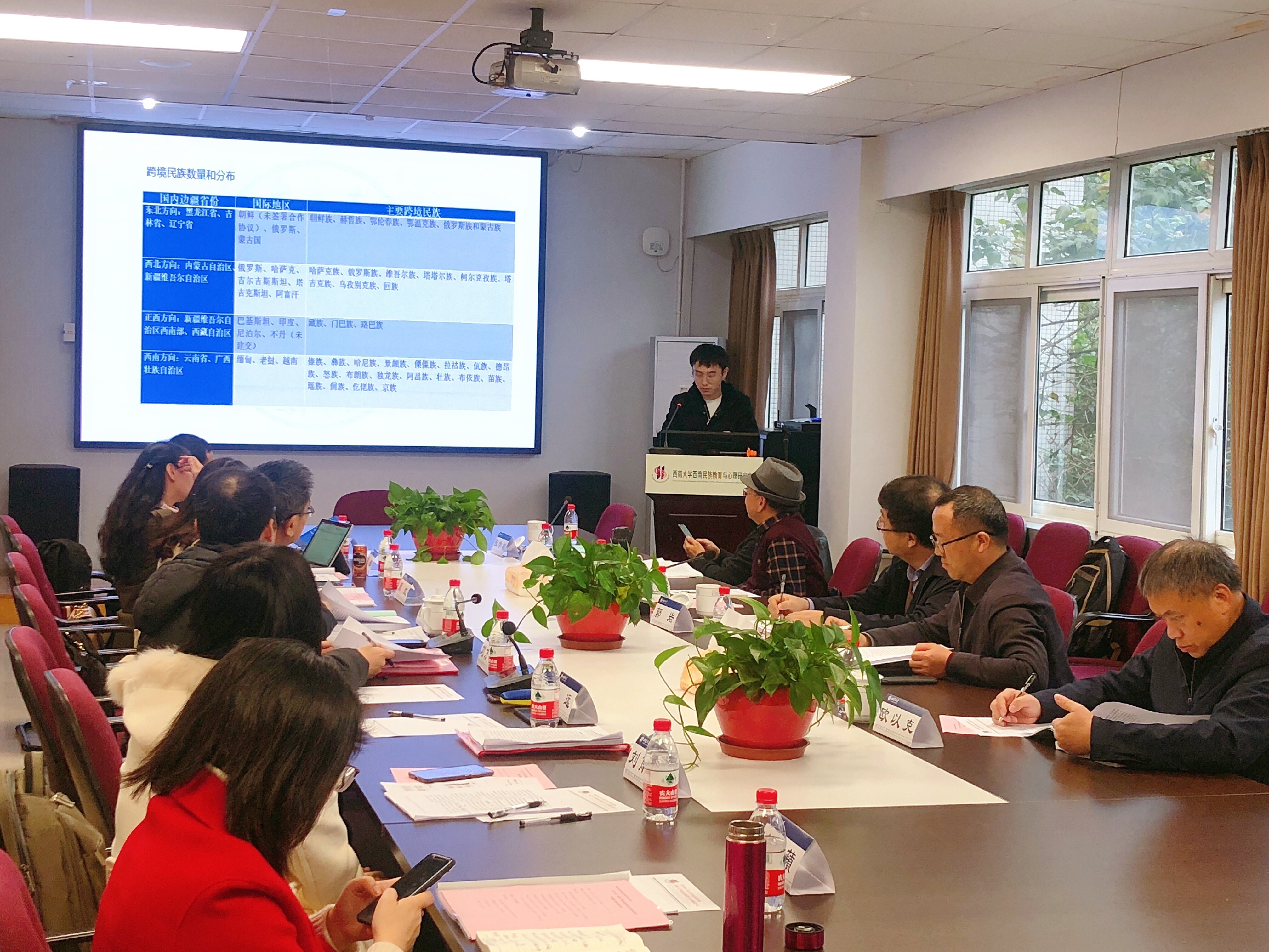 该课题是陈时见教授主持的国家社会科学基金民族学研究项目,会上首先由陈时见教授介绍课题实施总体进展情况和阶段性成果。回顾近一年的研究历程,课题组成员通过开展文献阅读及综述、课题讨论、实地调研、专题研讨、开题等工作,基于已有的跨境民族研究,确定了课题研究视角和研究依据。课题组成员以“一带一路”“跨境民族教育”“发展路径”为着眼点,以学术论文为成果载体,从跨境民族教育的“时代意蕴”、“发展理念”、“政策体系”、“文化融通”“教育模式”“教育技术创新”“资源配置”“质量检测”八方面梳理了课题研究脉络并做了详实的汇报。