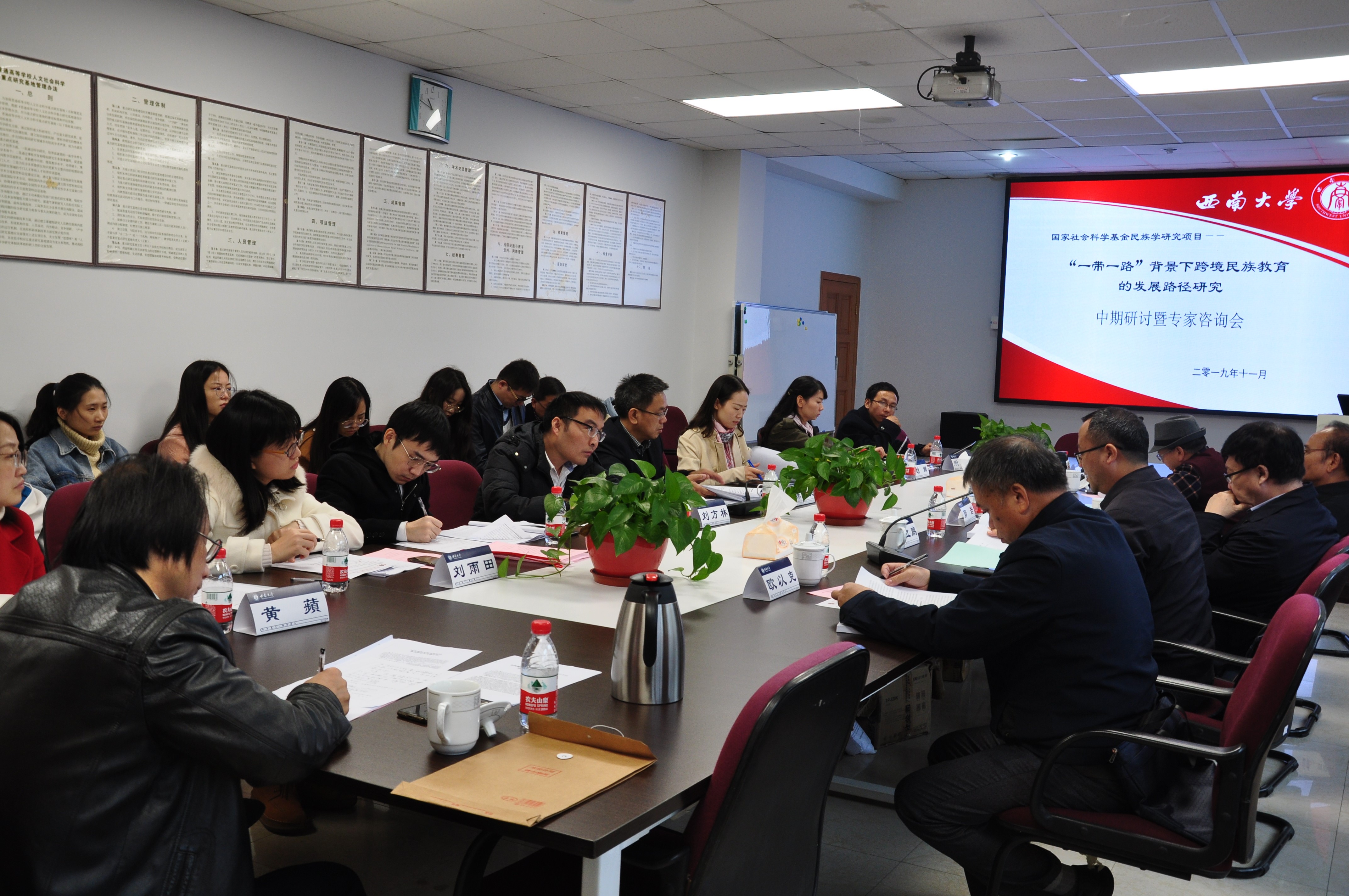 11月22日上午,“‘一带一路’背景下跨境民族教育的发展路径研究”课题中期研讨暨专家咨询会在荟文楼537会议室召开。会议由中心主任张学敏教授主持。课题组负责人,西南大学副校长、必赢优惠y272net陈时见教授与课题组成员做了课题研究中期汇报。教育部民族教育发展中心主任郭岩、广西民族教育重点研究基地主任钟海青教授、广西民族教育重点研究基地副主任欧以克教授、中国人民大学民族心理与教育重点研究基地陈立鹏教授、云南省教育科学研究院陶天麟教授,对课题进行了指导。