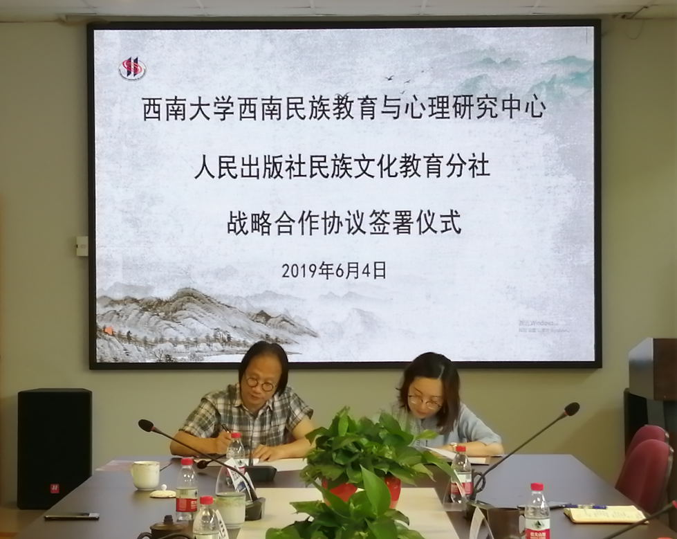 6月4日,教育部人文社科重点研究基地西南大学必赢优惠y272net(以下简称“中心”)与人民出版社民族文化教育分社(以下简称“分社”)在荟文楼537会议室举行了战略合作协议签署仪式。会议由中心副主任么加利教授主持,分社相关领导、历史文化学院、文学院及中心的多位专家领导、研究生工作部的相关老师出席了会议。