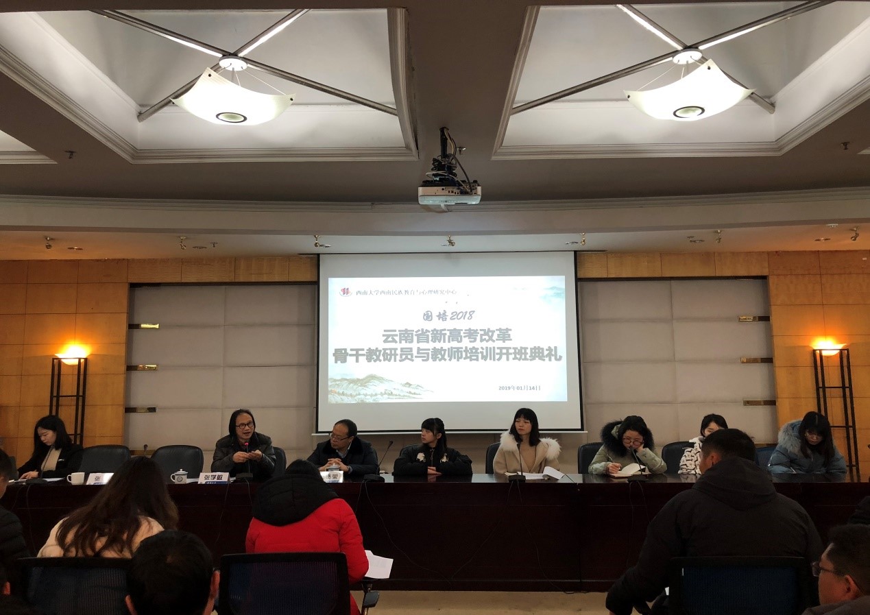 2019年1月14日上午9:00,来自云南省各州市县的203名骨干教研员和教师与西南大学必赢优惠y272net(以下简称“中心”)研究人员齐聚西南大学必赢优惠y272net部八楼会议厅,共同拉开了“国培2018·云南新高考改革骨干教研员和骨干教师培训”开班典礼的帷幕。