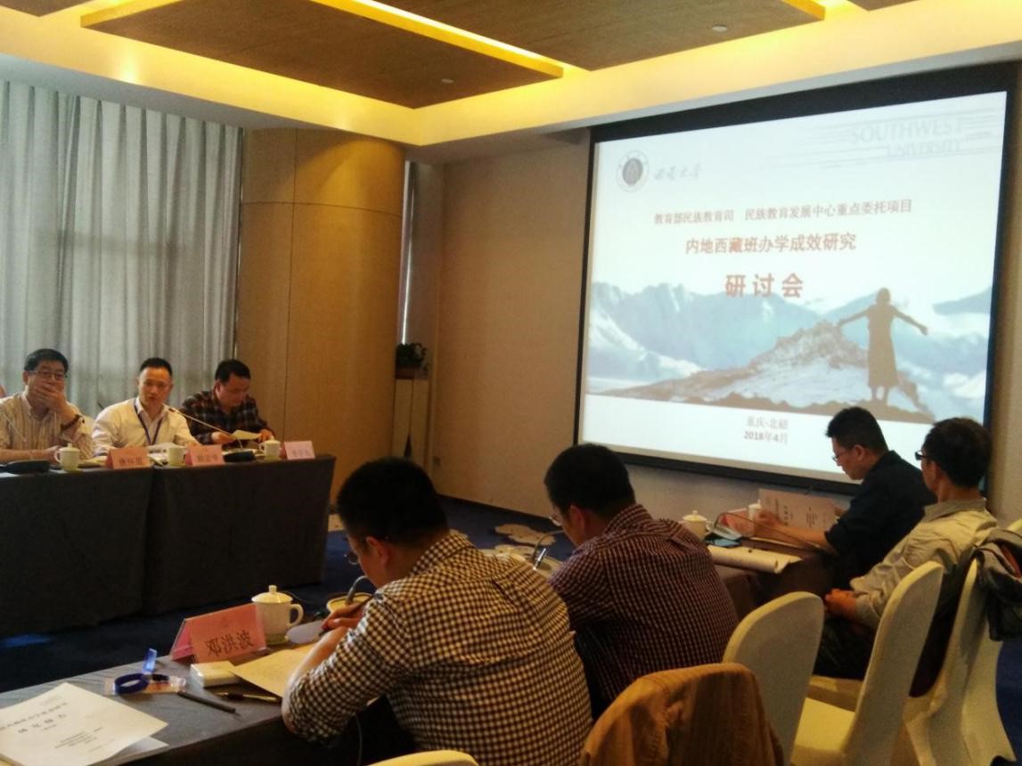 2018年4月27日,西南大学必赢优惠y272net召开了教育部民族教育司、民族教育发展中心重点委托项目研讨会。教育部民族教育发展中心副主任卢胜华、教育部民族教育司协作处处长李彬、教育部民族教育发展中心教育协作研究室副主任马佳、西南大学副校长崔延强、西南大学必赢优惠y272net主任张学敏、西南大学必赢优惠y272net教授蒋立松等出席会议,中央民族大学严庆教授、华东师范大学朱益明和董轩教授、部分内地西藏班校长(或原校长)、西南大学课题组相关负责人参加研讨会。张学敏教授主持会议。