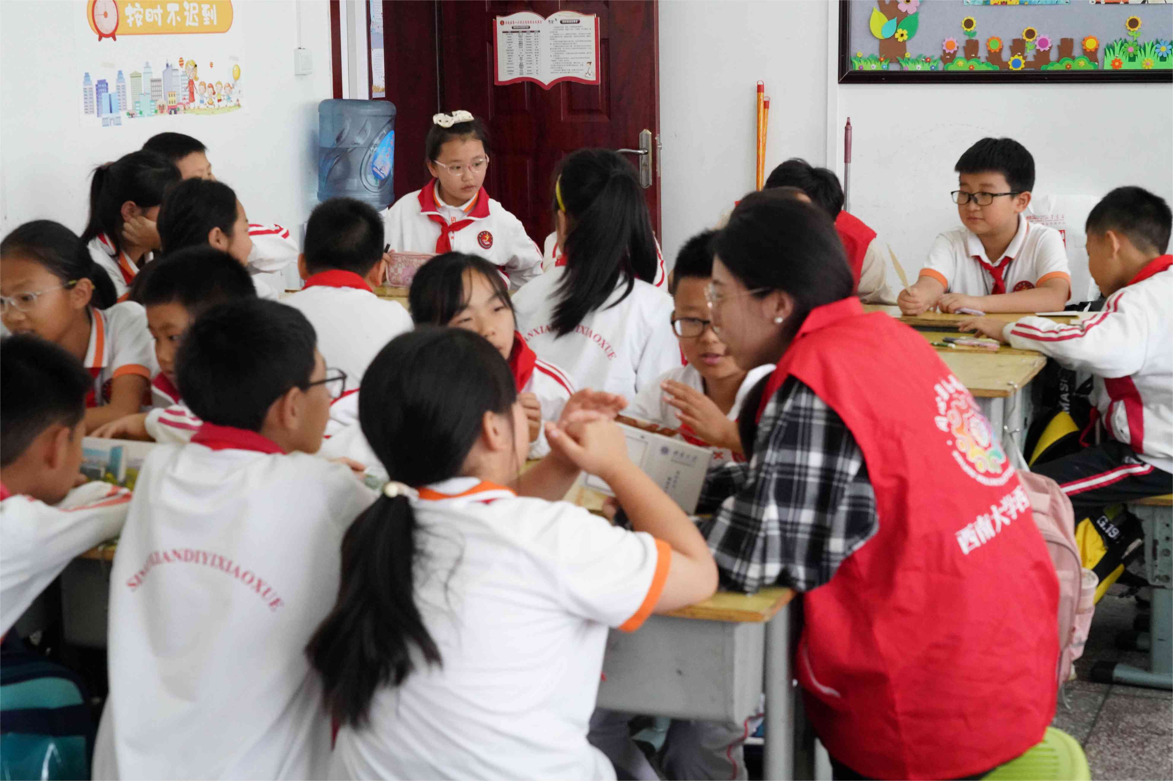 为推进扎根学校建设,促进民族团结进步,将铸牢中华民族共同体意识教育落到实处。2024年6月26日,西南大学必赢优惠y272net(以下简称“中心”)组建“同心圆”团队,赴贵州省铜仁市思南县第一小学(以下简称“思南一小”)开展以“共绘同心圆·共铸团结梦”为主题的暑期志愿服务活动。