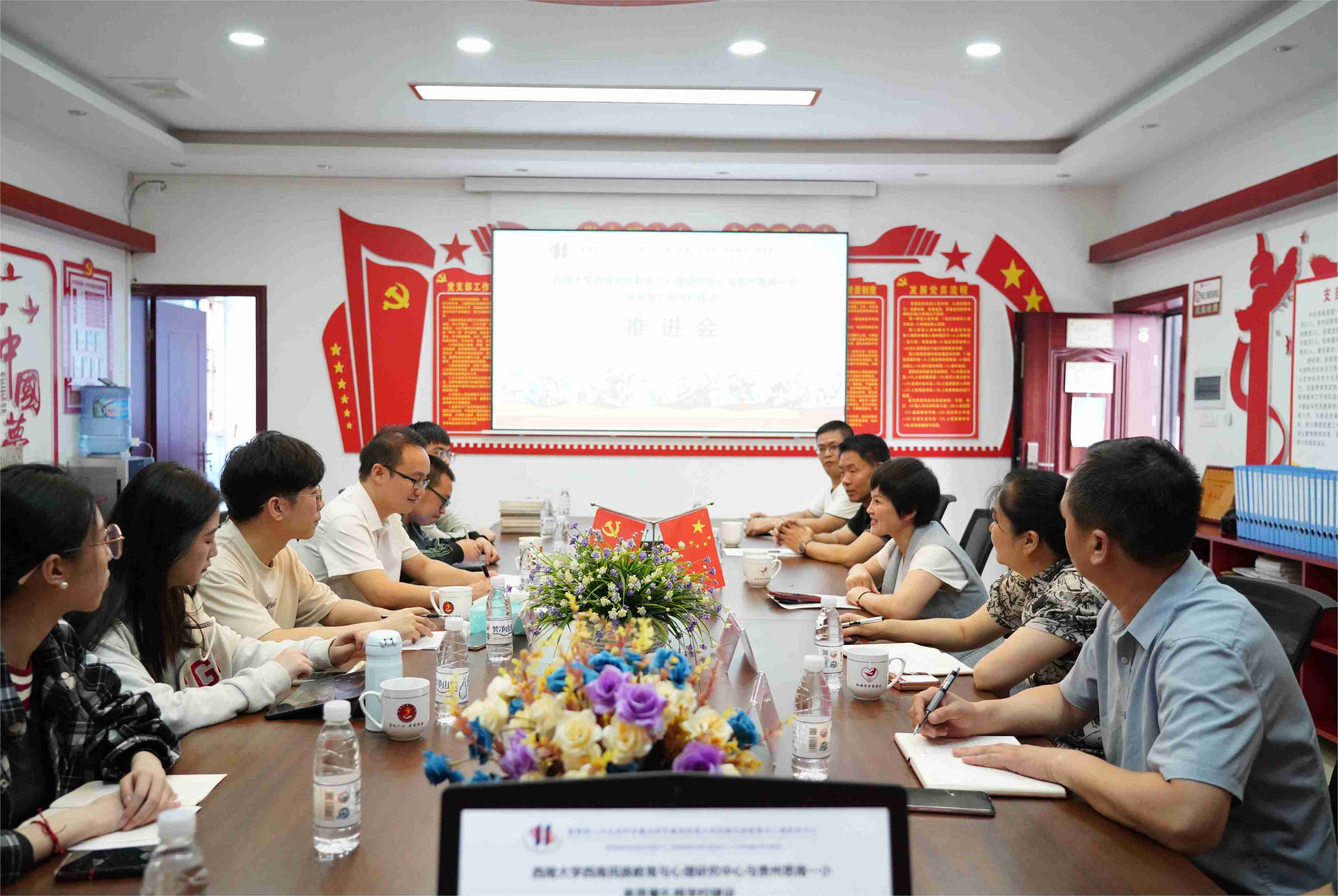 随后,中心团队与该校干部师生就铸牢中华民族共同体意识教育经验进行座谈。宾主双方就有关工作经验,以及共同关心的理论与实践问题进行深入交流研讨。通过此次座谈会,思南一小与“同心圆”团队达成了共识,双方将携手共进,为铸牢中华民族共同体意识,推动教育高质量发展贡献力量。