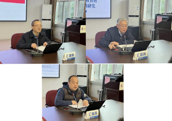 组图3 陈立鹏教授(左上)、么加利教授(右上)、田晓伟教授(下)分别代表项目团队做开题报告