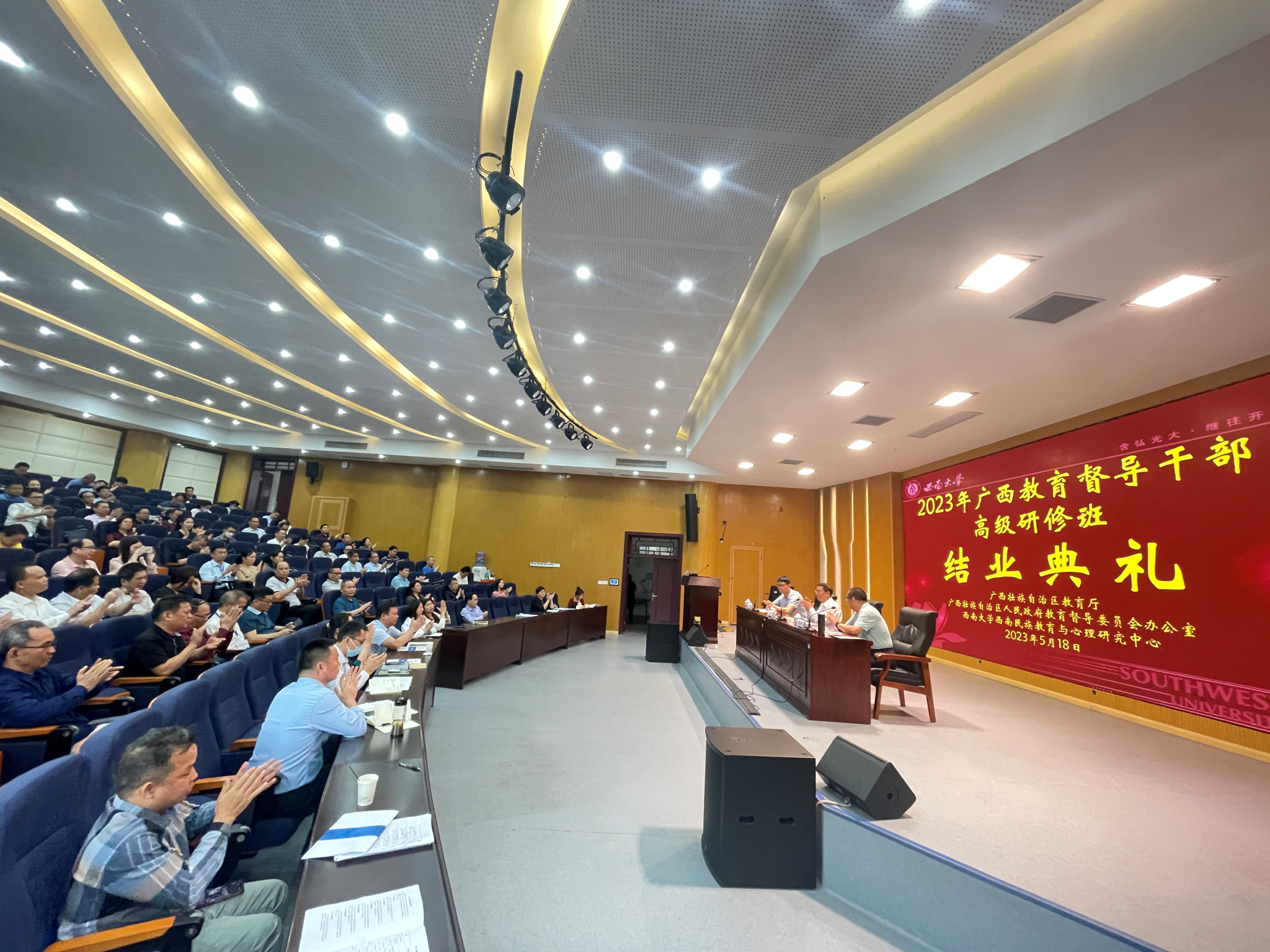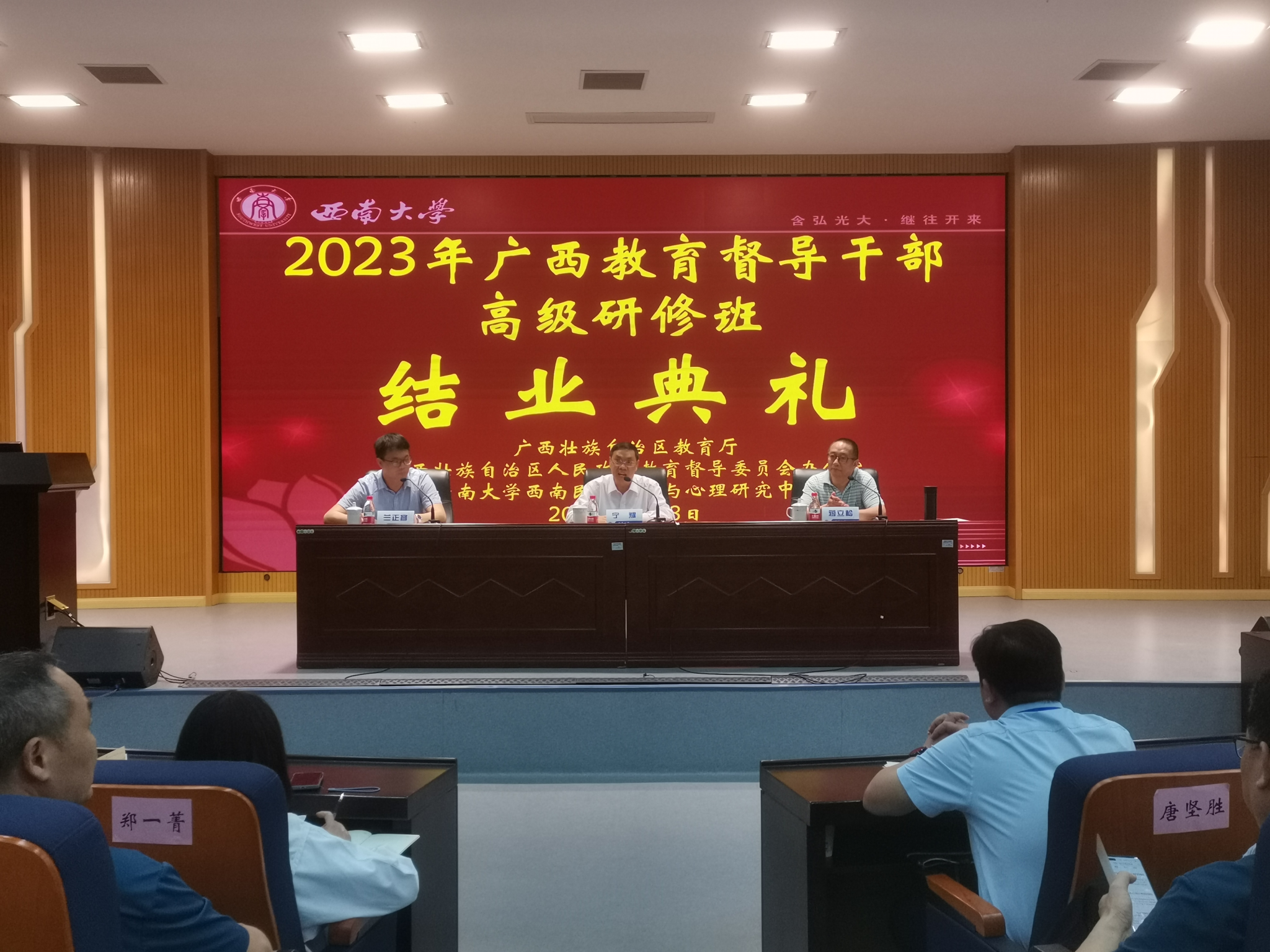 5月14日—18日,由教育部人文社会科学重点研究基地必赢优惠y272net(以下简称“中心”)承办的2023年广西教育督导干部高级研修班(以下简称研修班)圆满完成。5月18日下午,在西南大学31教309报告厅举行了研修班结业典礼。广西壮族自治区人民政府督学、广西民族大学原党委副书记宁耀教授、必赢优惠y272net(以下简称中心)副主任蒋立松研究员出席结业典礼,西民中心综合办兰正彦老师主持。