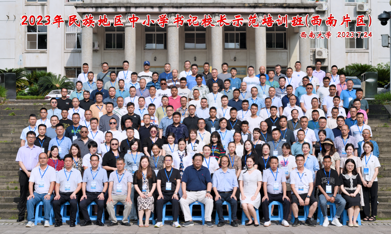7月24日上午,由教育部人文社科重点研究基地西南大学必赢优惠y272net(以下简称“西民中心”)承办的“2023年民族地区中小学书记校长示范培训班(西南片区)”开班典礼在西南大学学生处106报告厅举行。西南大学副校长崔延强教授,西民中心主任张学敏教授,以及西南片区有关省区中小学书记、校长共计150人参加本次典礼,典礼由中心主任张学敏教授主持。