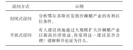 第三,重视开放性设问。问题生成是人们解决真实地理问题的初始阶段和关键环节,其认知过程会受设问方式的影响[24]。从表4呈现的2种典型设问方式来看,封闭式设问一般存在明确问题目标,如分析区位条件,考生直接应用已有的区位分析知识即可解答,使真实情境中相对隐晦的问题解决过程显化为直接的模式套用;开放性设问更接近真实劣构问题的提问方式,考生需要识别情境的关键信息,如区位、气候、地形、经济条件、生态环境效益等,整合应用已有学科知识、观点与能力生成问题和提出假设。因此,重视开放性设问,寓问于“景”,充分考虑设问的指向和对问题空间大小的影响,激发学生主动发现并解决问题的热情,为学生提供充分展示其分析、解决问题的平台,真正实现促进学生地理核心素养发展的育人目标。