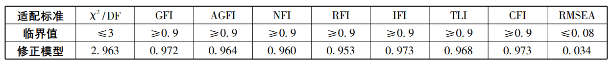 表2 修正模型拟合度检验统计