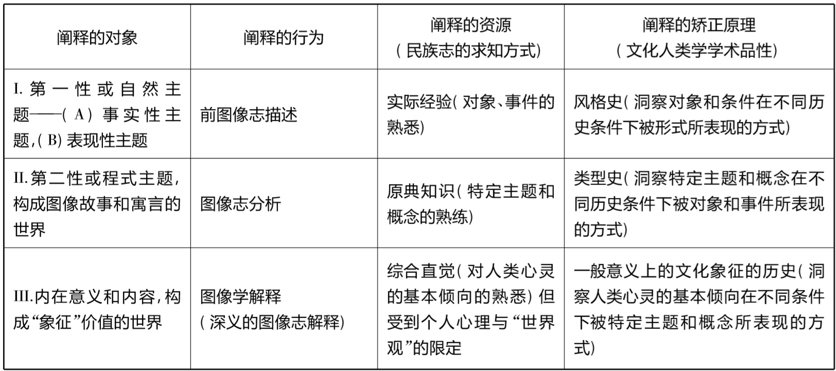 [16]该表根据欧文·潘诺夫斯基的图像解释过程,结合图像民族志的独特性而制成。可参见:欧文·潘诺夫斯基:《图像学研究:文艺复兴时期艺术的人文主题》,戚印平、范景平译,上海三联书店2011年版,导论.