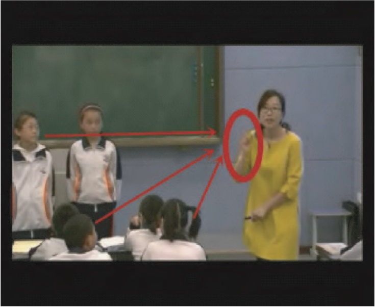 那么,这段互动是如何顺利推进的呢?反复观看这段视频,并将焦点落在图像维度时,教师体态语的联结作用就体现出来。