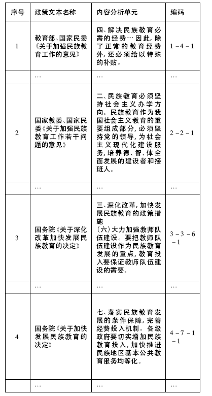 表1 民族教育政策文本内容分析单元编码表