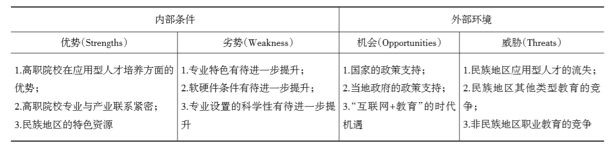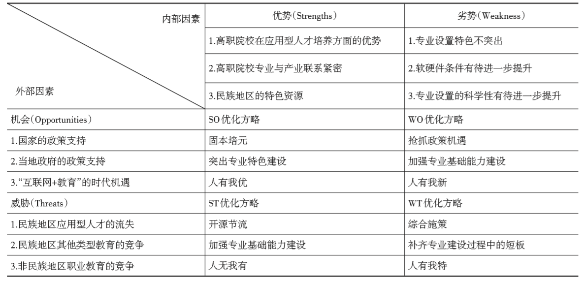 表1 民族地区高职院校专业建设的SOWT分析框架