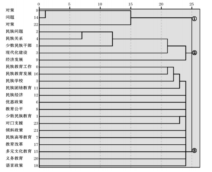 图2民族教育政策研究共词矩阵层次聚类结果