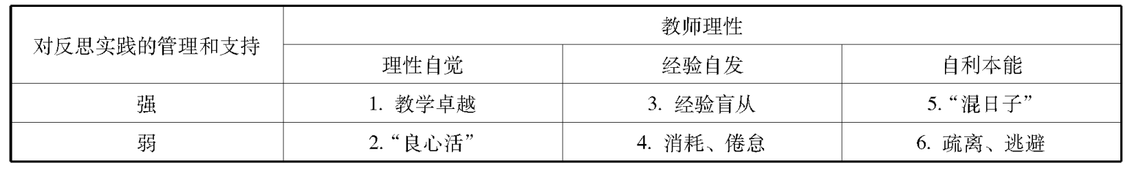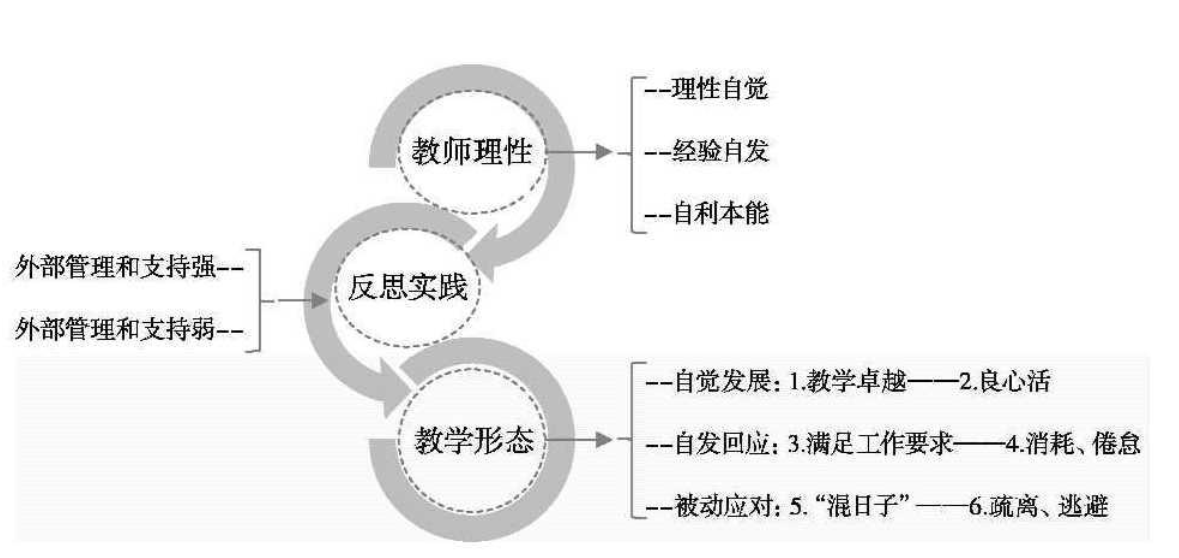 表2 教师理性和教学实践外部管理和支持强弱所决定的教学形态