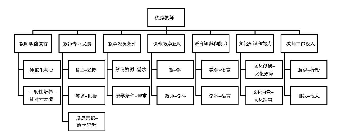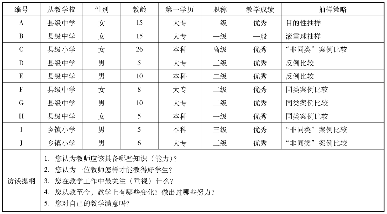 本文采用分析归纳法(analytic introduction)处理多案例数据和资料。作为案例研究的常用路径,它是“收集和分析资料的方法,也是发展和检测理论的方法”,[20]具有引导数据收集、促成理论修正、形成普遍关系的作用。依照分析归纳法的操作过程,[21]本研究基于文献综述,将决定教学质量的教师特征分为教师职前教育、教师专业发展、教学资源和条件、课堂教学与互动4个方面,以此构成了研究初期的初始概念,并通过将这些初步的概念转化为可对话的访谈问题(详见表1),将其带入了资料收集过程中。随着不断纳入新案例,研究者对访谈数据进行了编码和理论抽象,经过反复检验和修正理论模式,最终实现了理论模式对每个案例的意义解释。