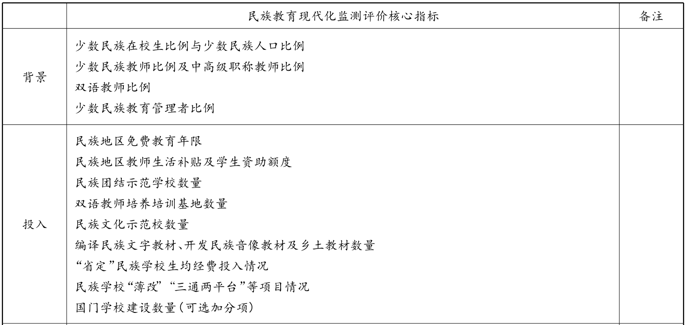 表1民族教育现代化监测评价核心指标