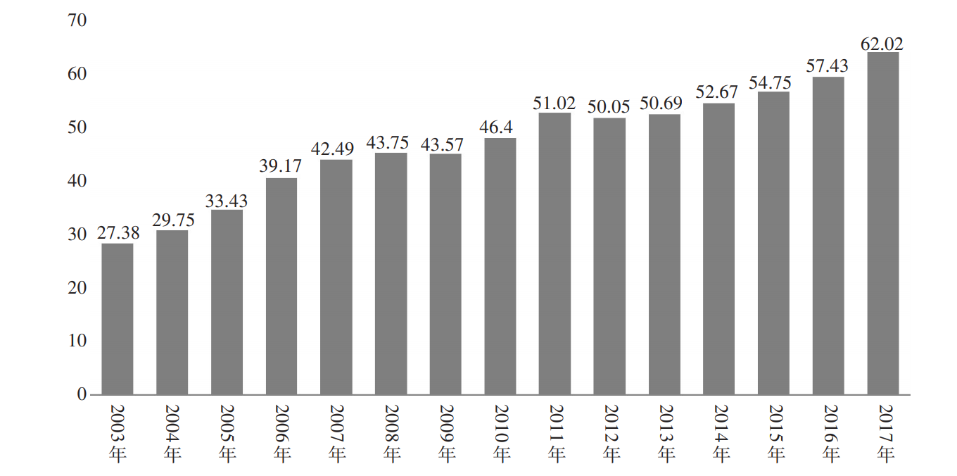 一是通过教育扶贫主体的多元化和方式的多样化,基本实现了对象的全覆盖,大幅提高了贫困人口的教育可得性,基本上解决了教育贫困问题。具体表现在:1)少数民族儿童受教育状况得到根本性转变,小学辍学率从2003年的6.99%下降至2017年的0.64%;2003—2017年少数民族在校学生人数增加32.64万,且2017年少数民族在校学生占在校学生总体的比例高达95%(见图2)。2)截至2018年6月,凉山州已开办“农民夜校”3745所,开设培训专题651个,落实师资17030人(次),发放教材168406套册,参加培训的贫困人口达195.4万。3)截至2018年6月,凉山州利用村级活动场、闲置村小等开办村级幼教点3096个,学前三年毛入园率达83.4%。