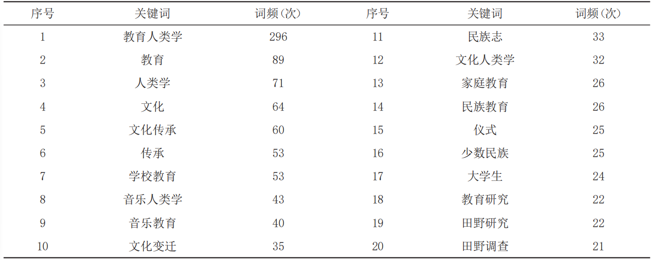 表4 近十年教育人类学研究论文词频统计情况前20位