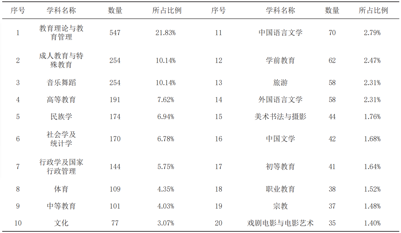 表5 近十年教育人类学研究论文成果的学科分布