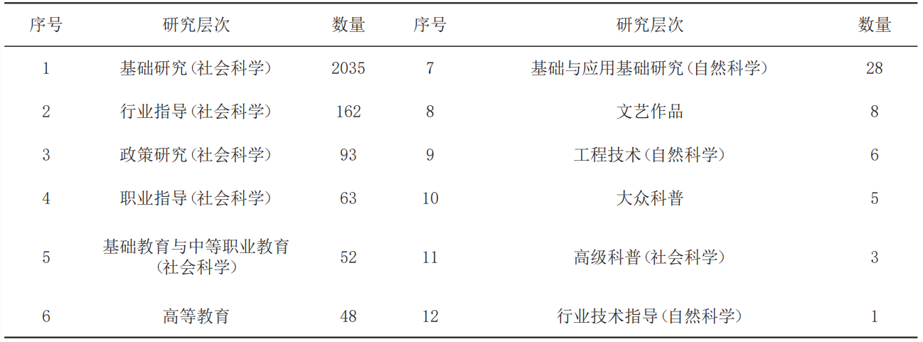 (三)研究层次分布