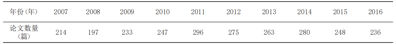 表2 近十年我国教育人类学研究论文发表的年代分布(2007-2016年)